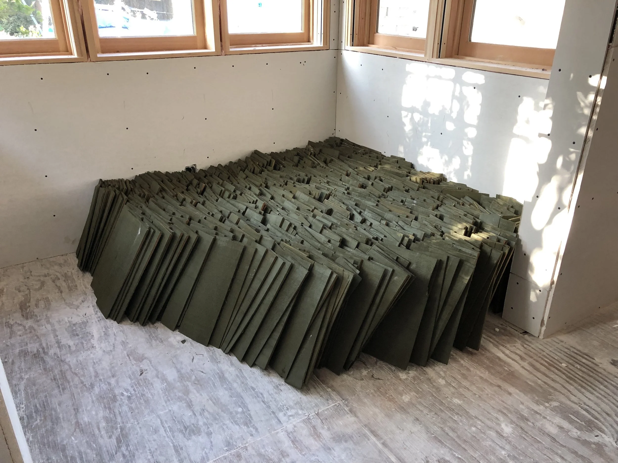 Each one of these shingles is destined to be nailed individually to the whole exterior of the house.