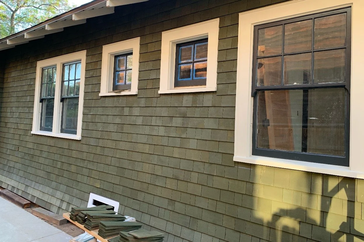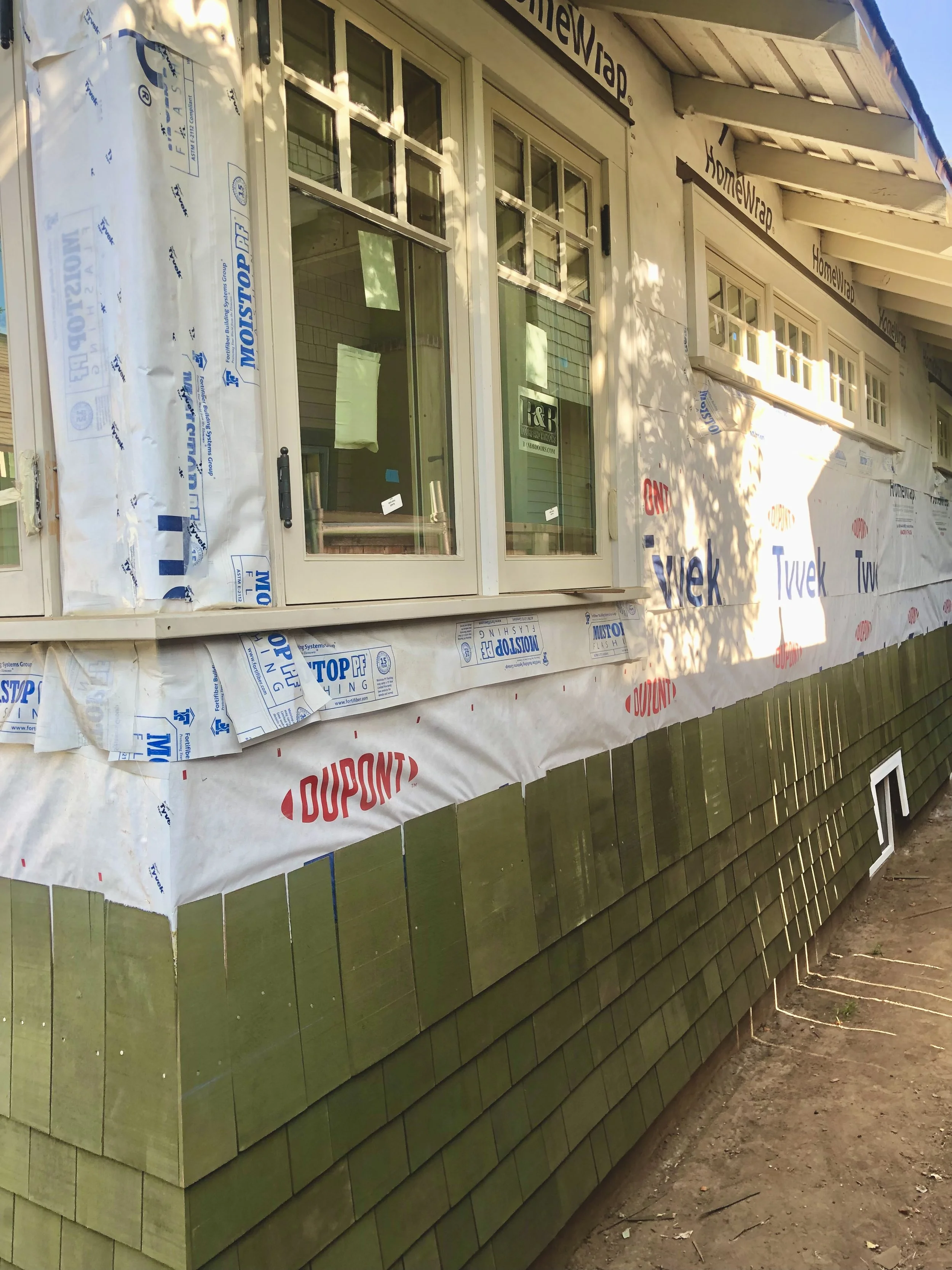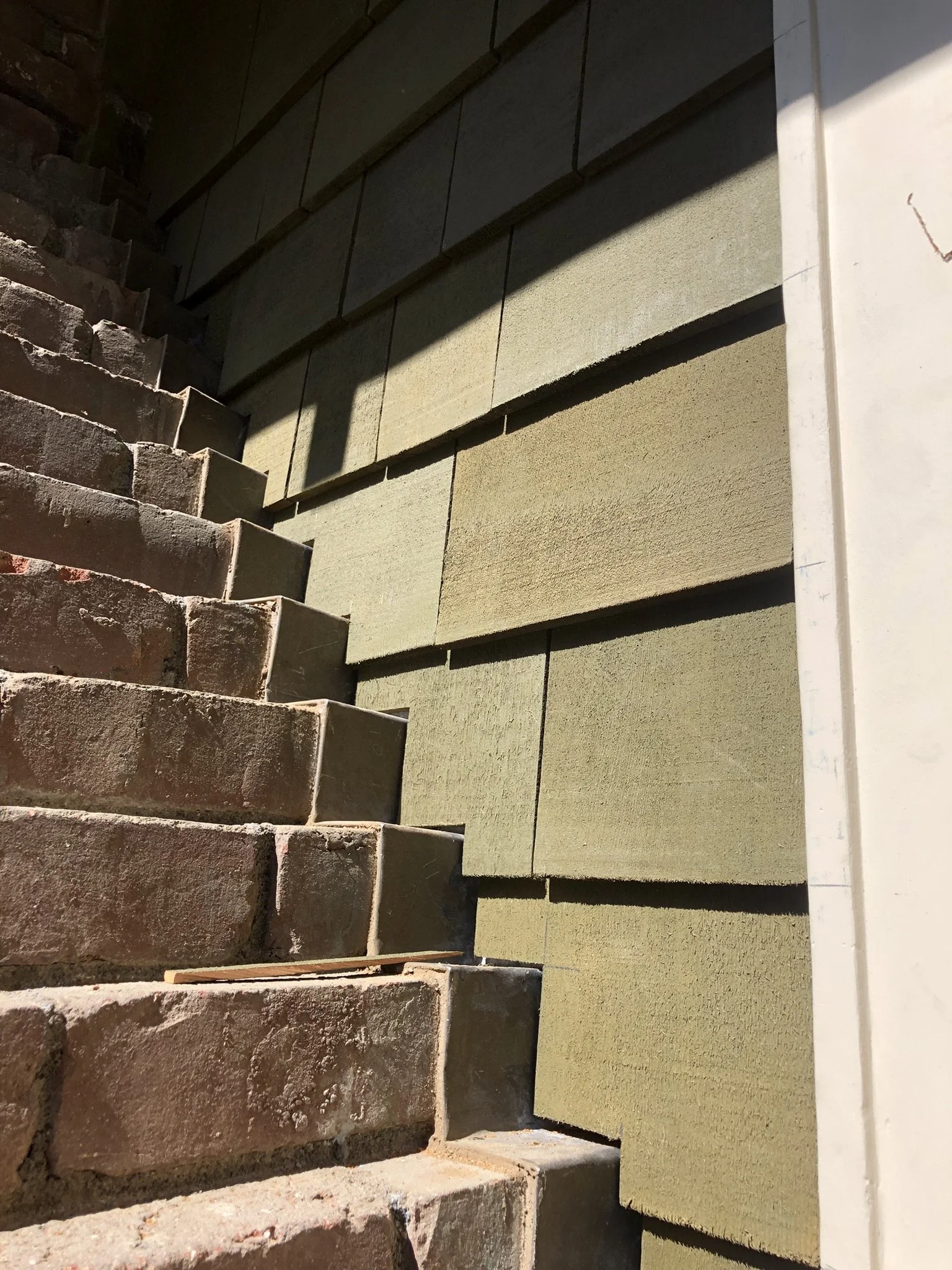 A number of people have said to me, “what if you decide to paint the house something other than green?” Then what of “Green and Shingled”? But when we had that conversation with my color consulting friend back in 2019, we already knew it was unlikely that the finished house would be anything but green. And the “shingled” part was a given, since we had committed to replacement of the original cladding in kind as a part of our Certificate of Appropriateness (yes, that’s a real thing that was issued for our project. Do you not spend much time at City Hall?).