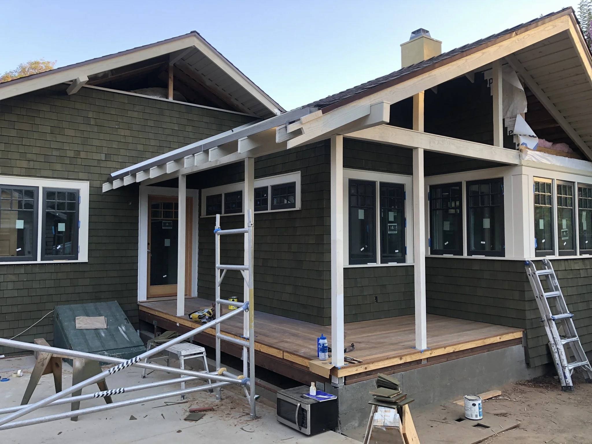 Exactly one year after moving out of the house, and ten months since we started construction, here we are! The end is in sight, but we are easily looking at rounding out one year of construction before it’s all done. I’ll feel better when they finish the front of the porch. I’m tired of looking at the Tyvek wrap on that front.
